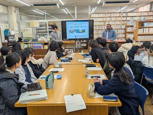 2月20日(金)、外国出身の研究者を本校に招き英語で科学講義を行う「サイエンス・ダイアログ」を開催しました。今回は、静岡大学大学院より、パキスタン出身の研究者Muhammad Adnan Sabarさんを講師としてお招きしました。生徒からは「生物に関して興味があったので、とても興味深い講義でした。薬学についてもっと学んで、生物界の健康に貢献できるようになりたいです」「細胞の仕組みなど、初歩的なことから詳しく教えてくださり、生物のことをあまり知らない私でもはっきりと理解することができた。専門的な内容ではあったが、世界のAMRの問題など今まで知らなかったことをたくさん知ることができ、とても良い経験だった」との感想が聞かれました。