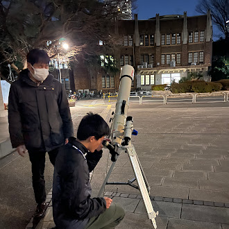 1月31日(土)、2月1日(日)に東京大学で行われた研修「星の教室」に希望者が参加しました。研修は松商学園高校、韮崎高校の生徒と合同で行われ、「宇宙の年齢を求める」ことを目的に講義を受け、班に分かれて実習を行いました。2日目にはどのように宇宙の年齢を導き出したのか、班でまとめて発表会を行いました。その他にも東大の校舎見学や、夜は天体望遠鏡で月や木星の観測を行うなどして、交流を深めながら思考力を高められる貴重な2日間となりました。