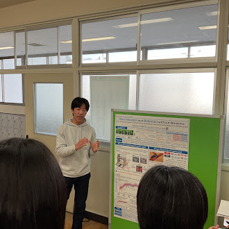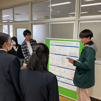 クラブと2年生課題研究の14チームが参加し、それぞれの研究を発表しました。今回より英語での研究発表、開会式での1分間の研究紹介が取り入れられ、10チームが英語でチャレンジしました。韮崎高校の他に笛吹高校、日川高校、甲府南高校も参加して研究発表で交流を深め、有意義な時間となりました。