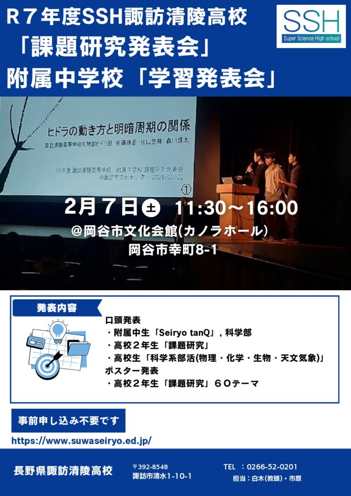 令和7年度 諏訪清陵高等学校・附属中学校課題研究発表会のご案内