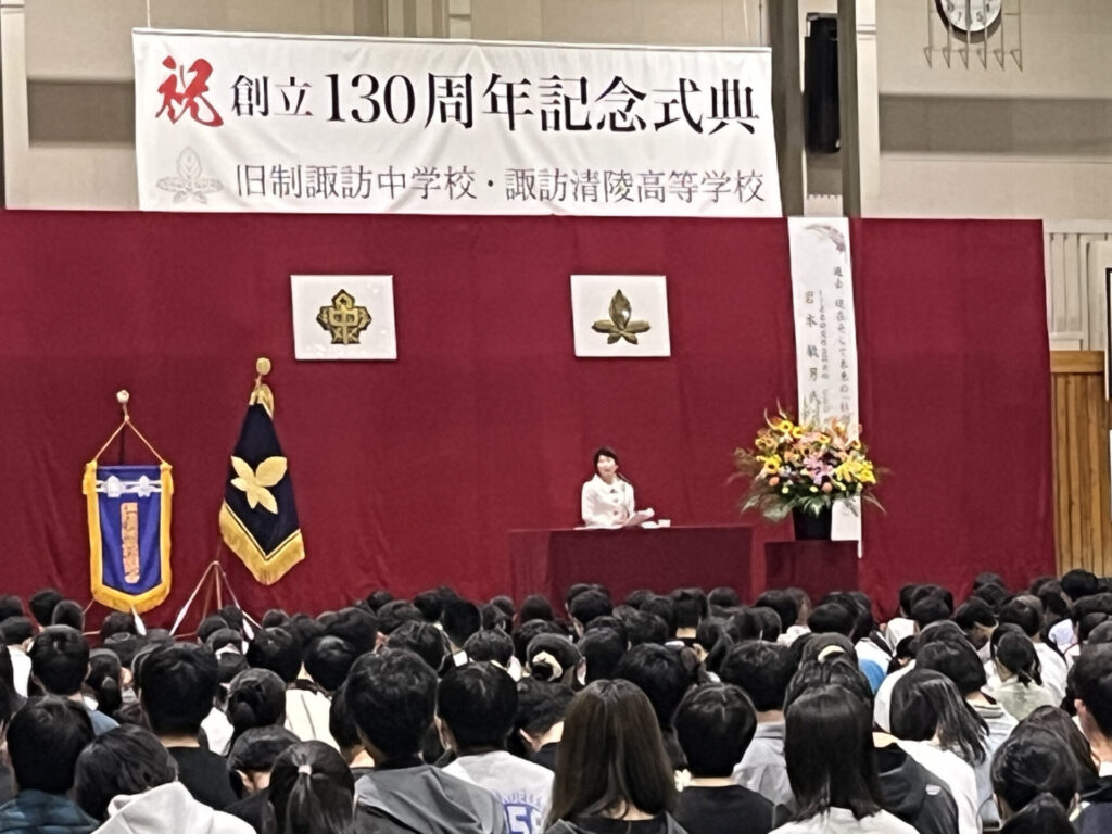 諏訪清陵高校130周年記念式典が開催されました。「過去、現在そして未来の「社会」と「人」と「清陵」ー本校74回生 岩本敏男さんの記念講演会をお聞きすることもできました。来賓の皆様、同窓生、在校生の心に残るであろう、大切な節目となる会となりました。御来校いただきました皆様・日頃よりお世話になっております皆様に御礼申し上げます。今後とも、諏訪清陵高校を宜しくお願い致します。